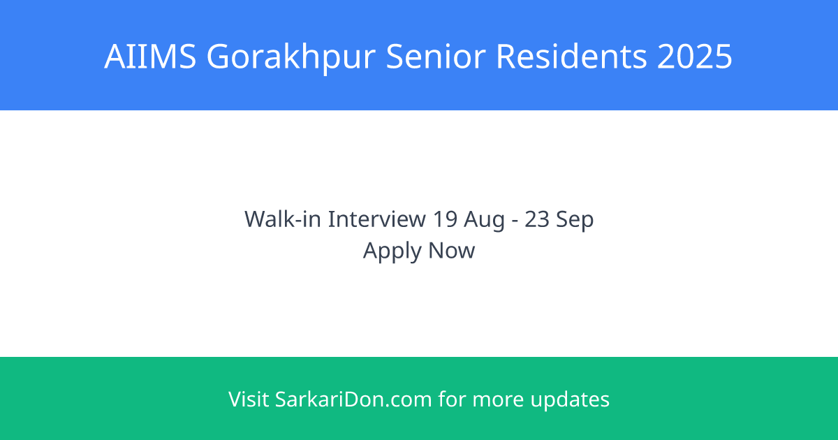 AIIMS Gorakhpur Senior Residents: Walk-in Interviews Starting 19th August 2025