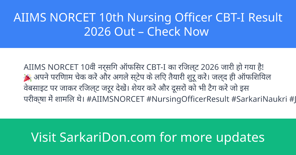 The AIIMS NORCET 10th Nursing Officer CBT-I Result 2026 has been declared. Candidates who appeared for the exam can now check their results online. This is an important update for all aspirants eagerly waiting for their outcome to know their selection status for the next stage.