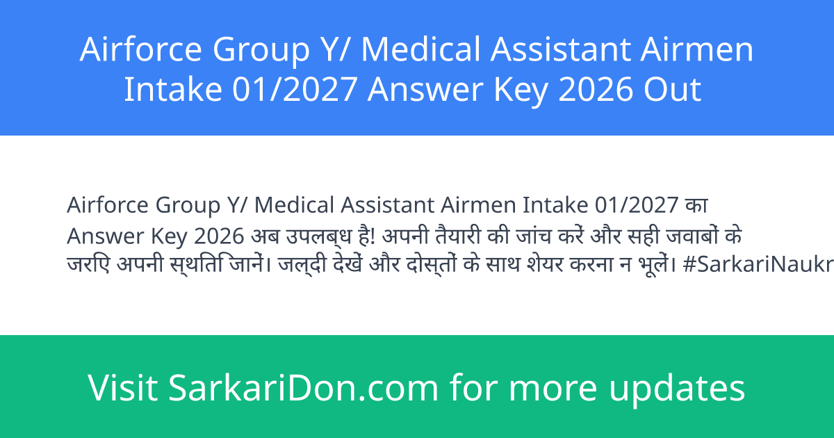 The answer key for the Airforce Group Y/ Medical Assistant Airmen Intake 01/2027 exam has been officially released. Candidates who appeared in the examination can now verify their answers and estimate their scores using the official answer key provided by the Central Airmen Selection Board (CASB), Indian Air Force (IAF).