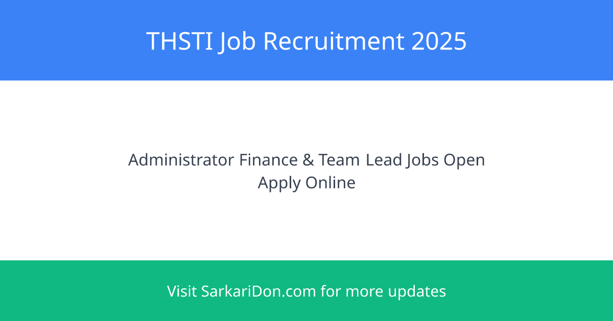 Apply Now: Administrator (Finance) and Team Lead Clinical Science Positions at THSTI - Direct Download Link