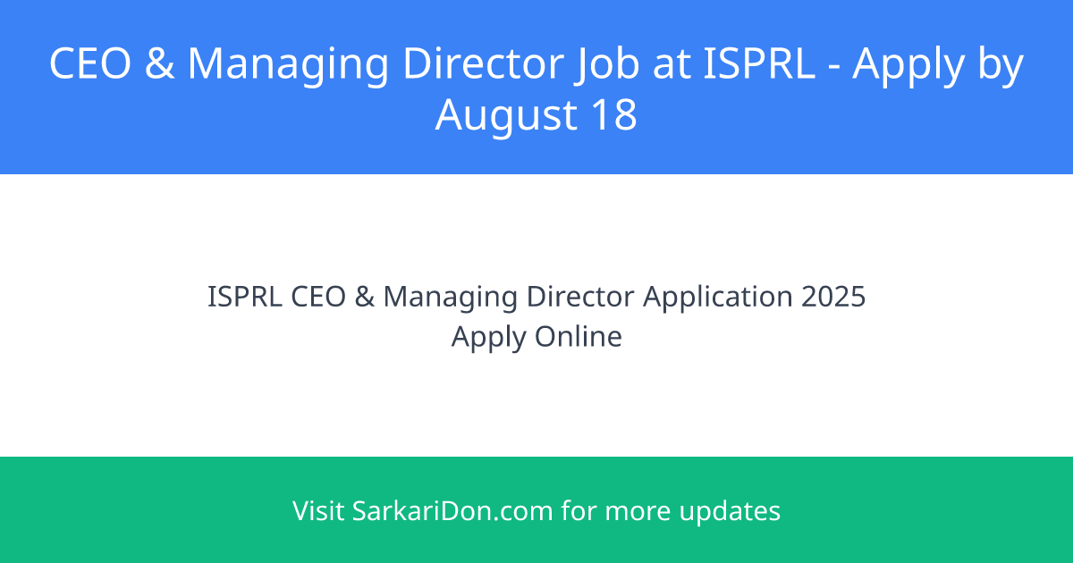 Applications are invited from Indian Nationals for the position of Chief Executive Officer & Managing Director at the Indian Strategic Petroleum Reserves Limited (ISPRL). This is a prestigious opportunity for those looking for a sarkari naukri in the government sector.