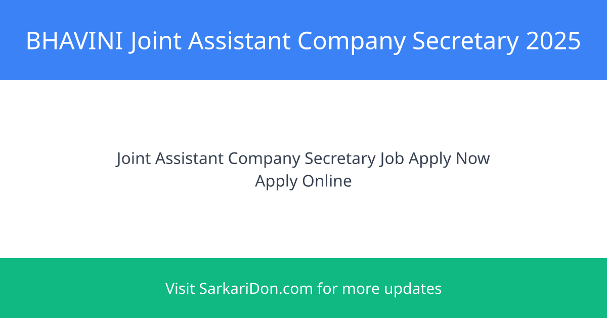 The Bharatiya Nabhikya Vidyut Nigam Limited (BHAVINI) is inviting eligible candidates to apply for the position of Joint Assistant Company Secretary. This is a great opportunity for those looking for a government job in the energy sector.