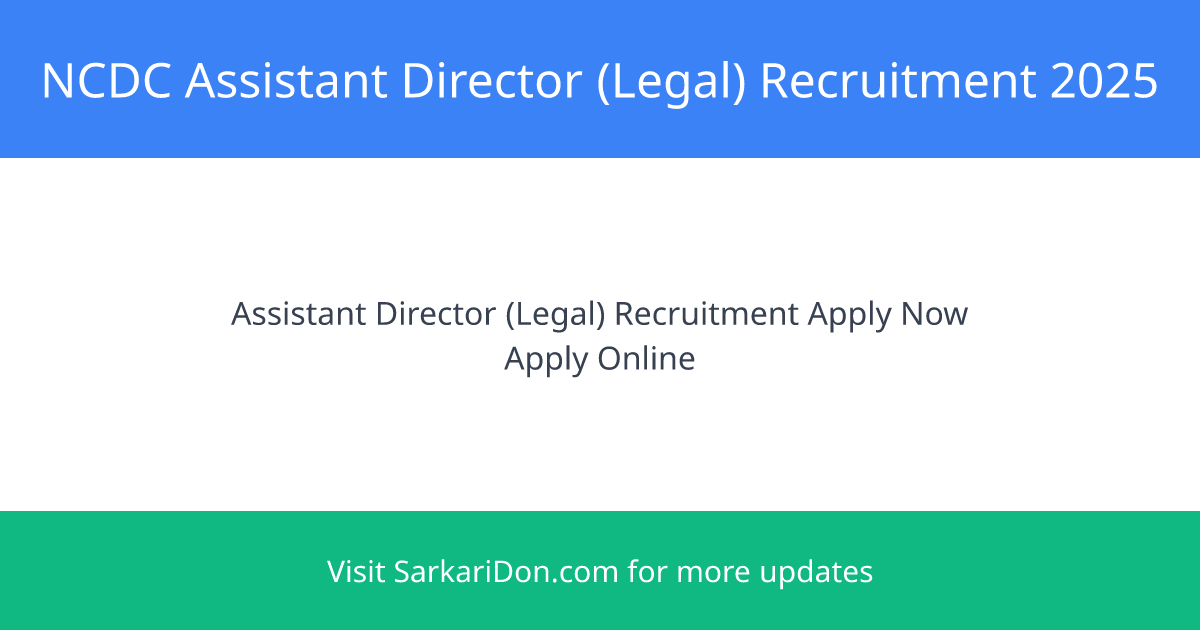 Apply Now for NCDC Assistant Director (Legal) - 2025 Recruitment Announcement