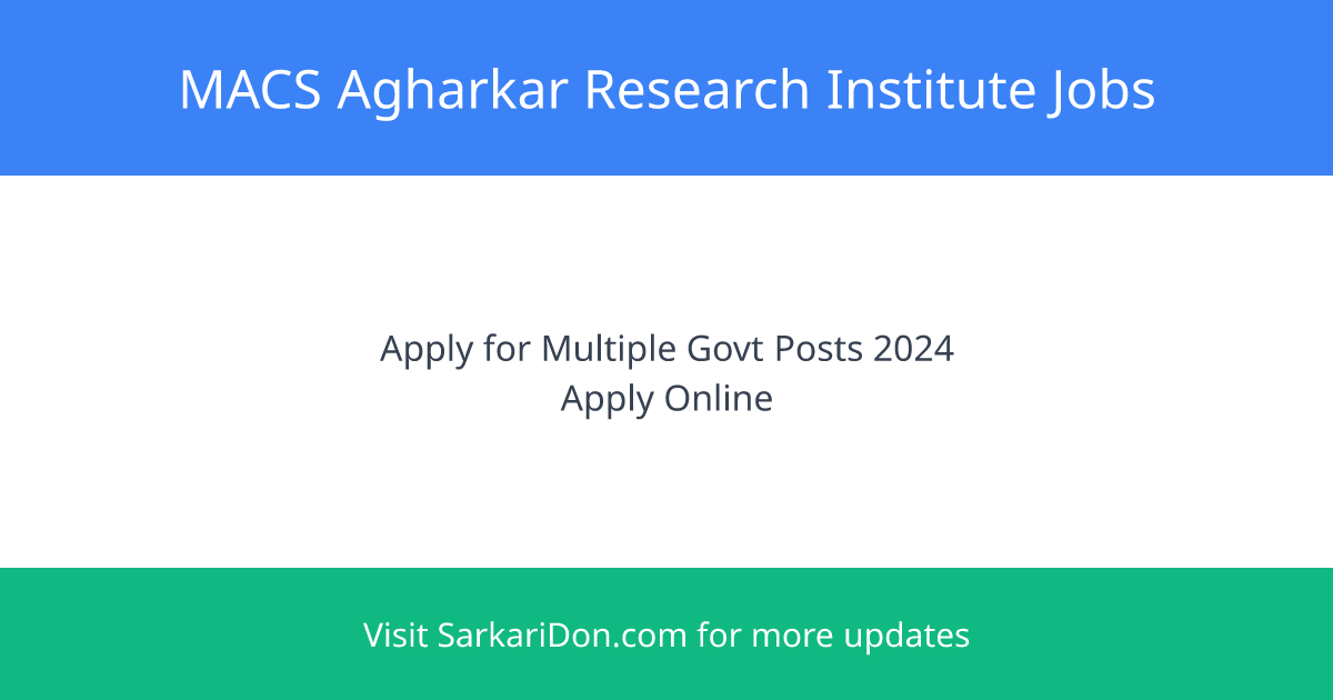 Apply Now: Multiple Positions Open at MACS Agharkar Research Institute