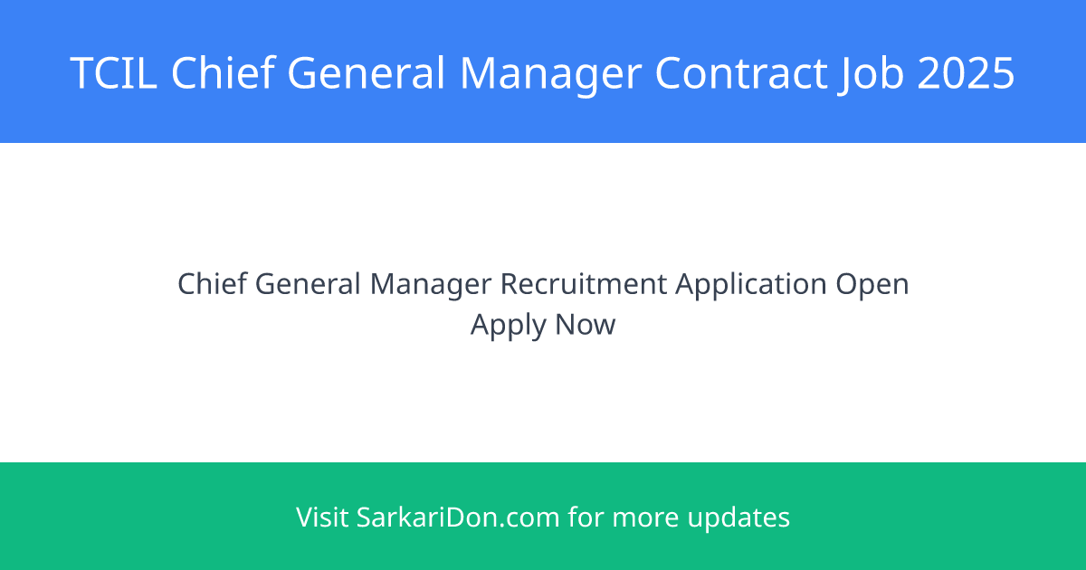 Apply Now: TCIL Invites Applications for Chief General Manager on Contract Basis