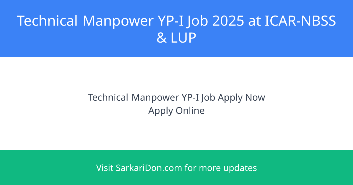 ICAR-NATIONAL BUREAU OF SOIL SURVEY Announces Job Opening for Technical Manpower (YP-I)