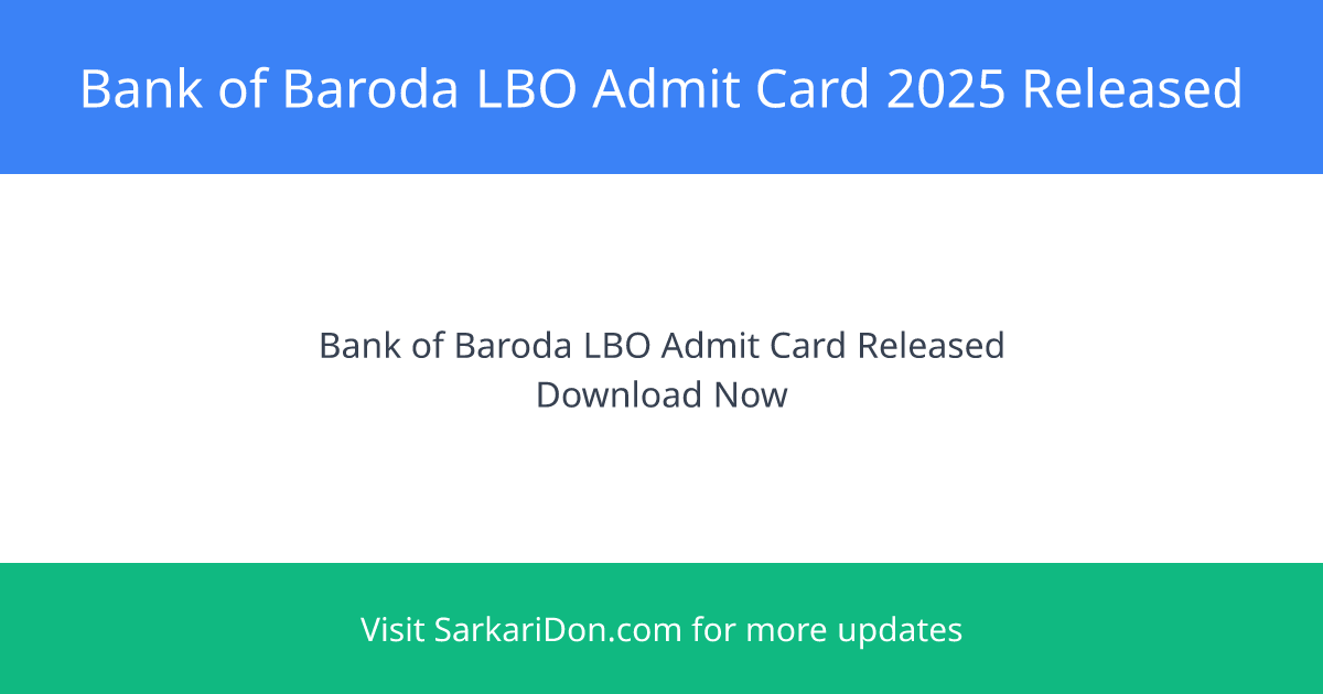 The Bank of Baroda has officially released the LBO Admit Card 2025 for the recruitment of 2500 Local Bank Officer posts. The admit card is crucial for candidates as it is mandatory for entry into the examination hall.