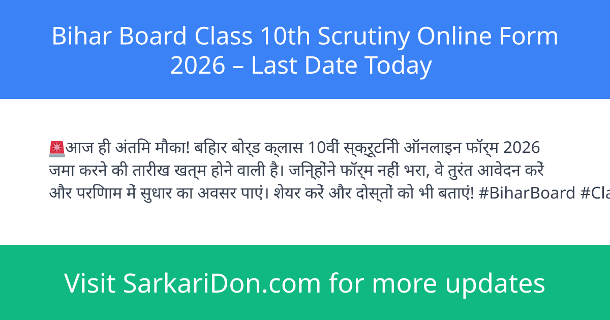 Bihar Board Class 10th Scrutiny Online Form 2026 β Last Date Today