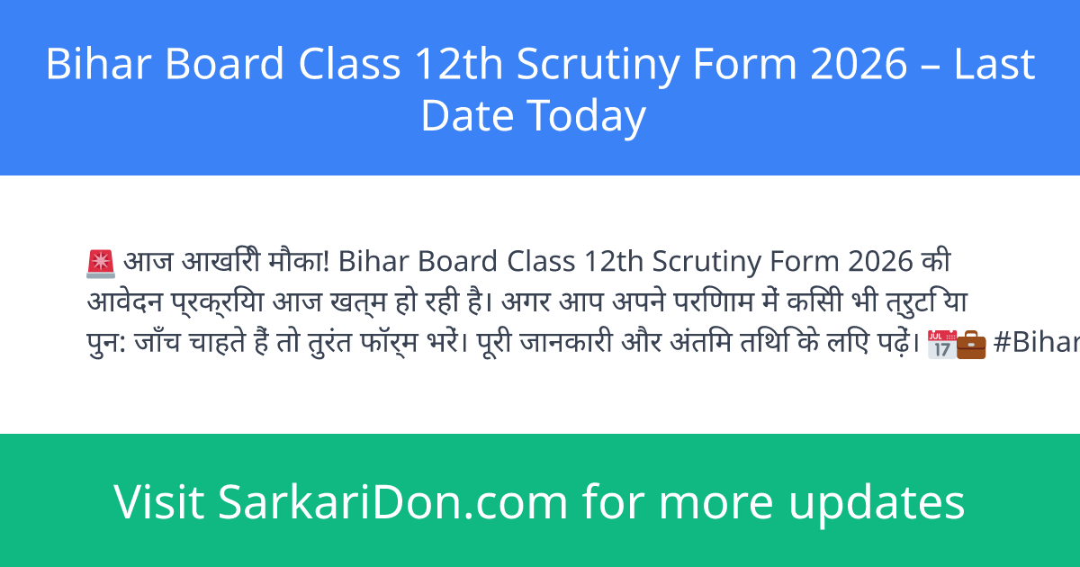 Bihar Board Class 12th Scrutiny Form 2026 – Last Date Today
