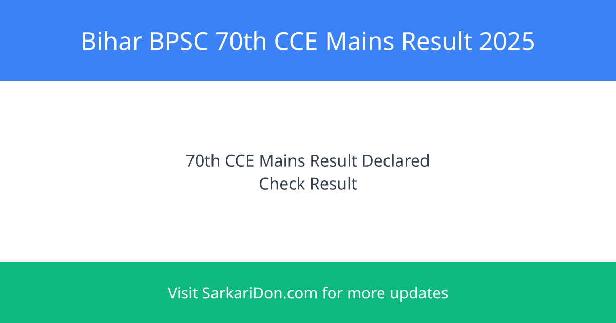 Bihar BPSC 70th CCE Mains Result 2025 Out โ Sarkari Result Announcement