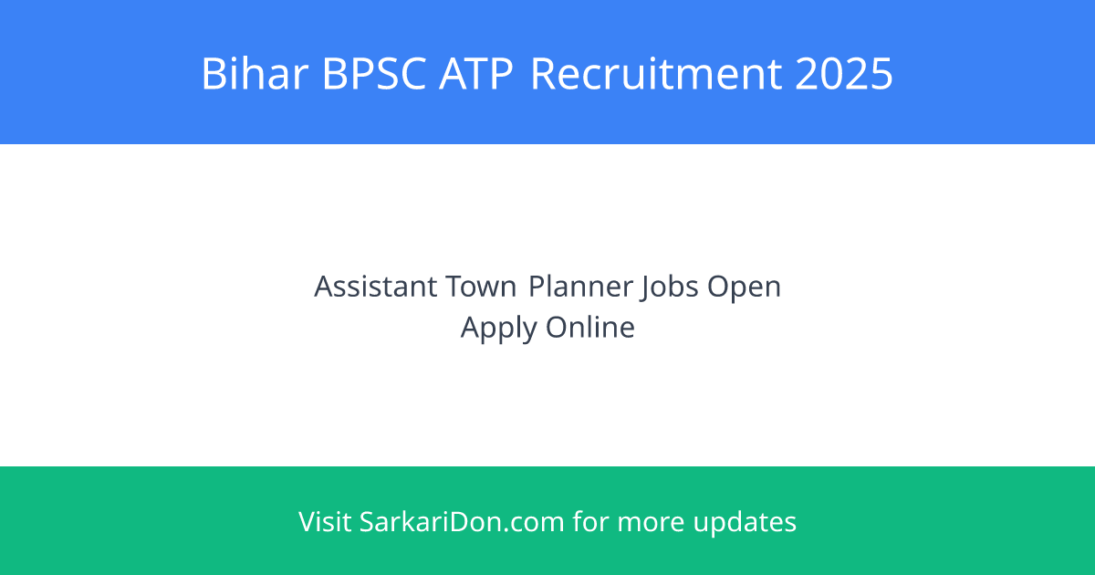 The Bihar Public Service Commission (BPSC) has officially opened the online application process for the Assistant Town Planner (ATP) recruitment for the year 2025. This is a fantastic opportunity for candidates looking to secure a government job in Biharβs Urban Development & Housing Department.