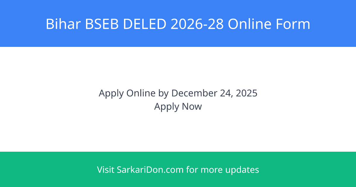 Bihar BSEB DELED Online Form 2026-28: Apply by December 24, 2025 – Last Chance to Apply!