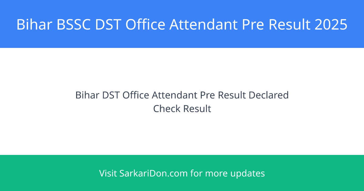 Result Declared! Bihar DST Karyalay Parichari Pre Result 2025 is now available. Check your sarkari result using the official portal below.