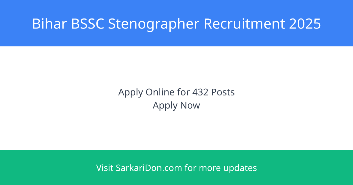Bihar BSSC Stenographer Recruitment 2025: Apply Online for 432 Posts