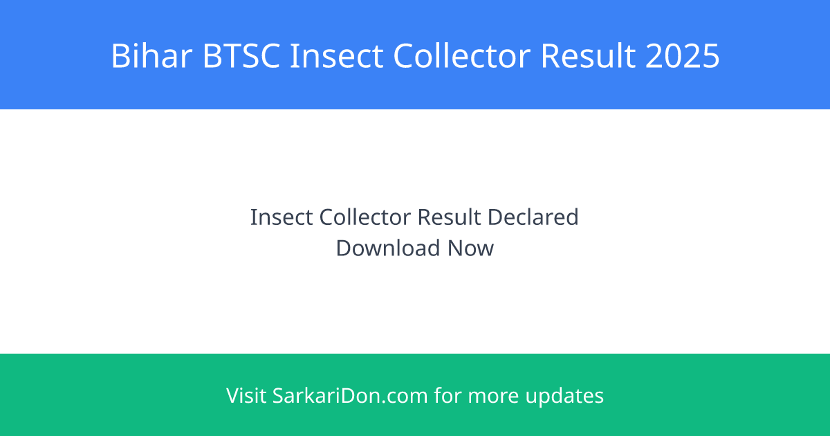 The Bihar Technical Service Commission (BTSC) has officially announced the Insect Collector Result 2025 on June 21, 2025. Candidates who took the exam can now check their results and download the merit list and scorecard from the official BTSC website at www.btsc.bihar.gov.in.