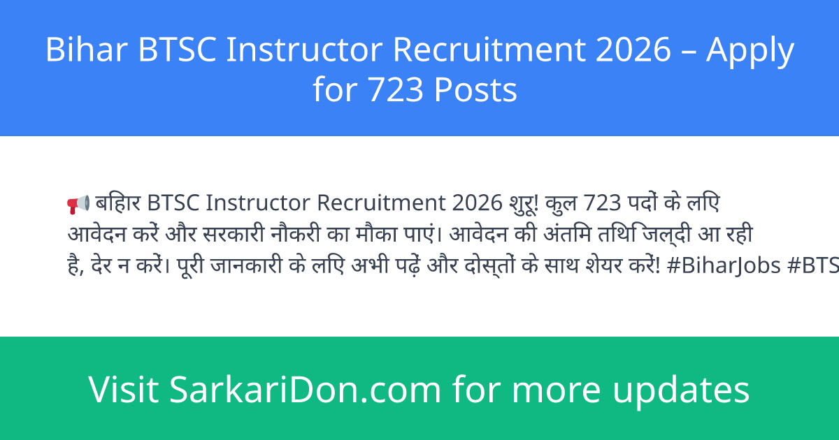 Bihar BTSC Instructor Recruitment 2026 β Apply for 723 Posts