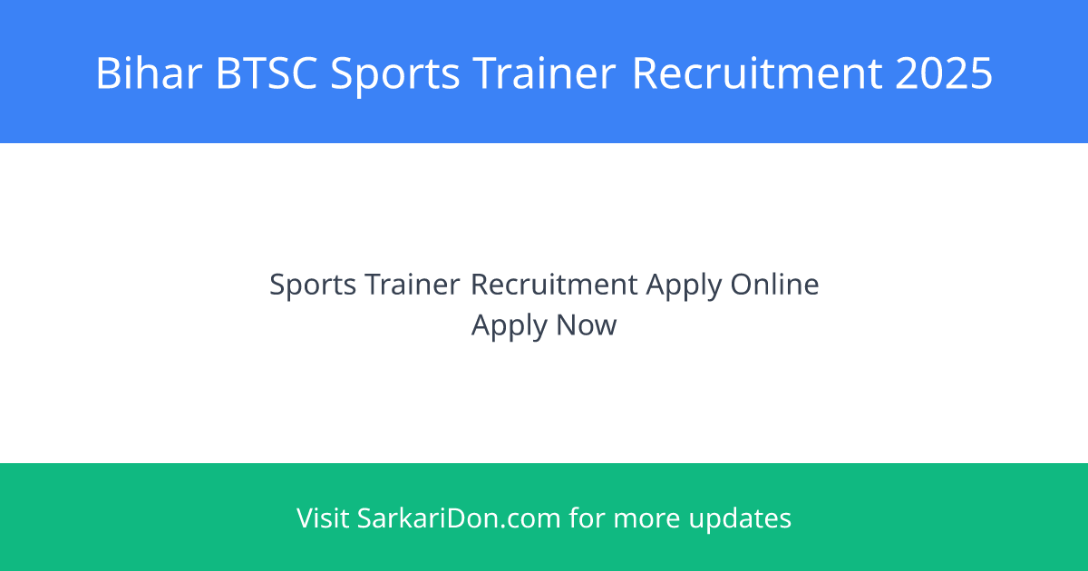 Bihar Technical Service Commission (BTSC) has released an official notification for the recruitment of 48 Sports Trainer posts. Candidates looking for latest government job opportunities can apply online from December 22, 2025, to January 22, 2026.