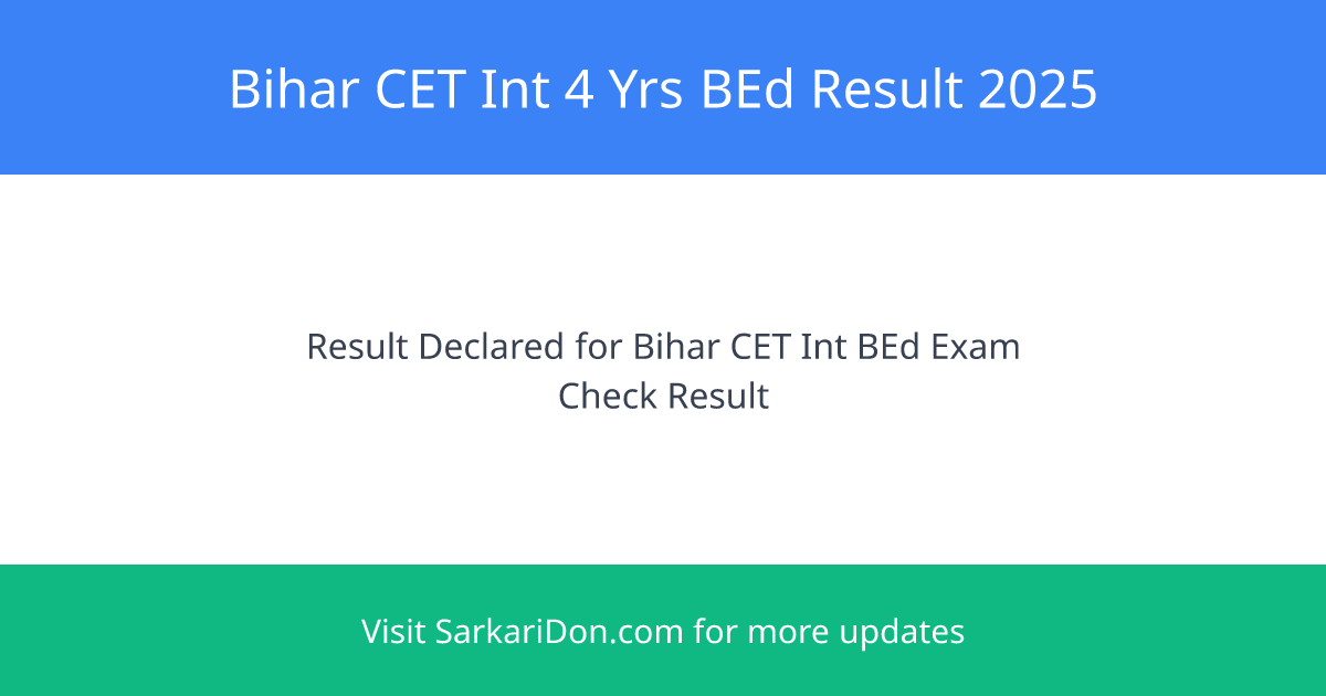 Bihar CET Int 4 Yrs BEd Result 2025 Declared: Check Your Latest Government Job Sarkari Result Now