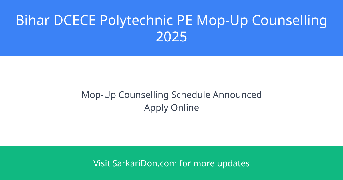 Bihar DCECE Polytechnic PE Mop-Up Counselling Schedule 2025: Important Dates and Details
