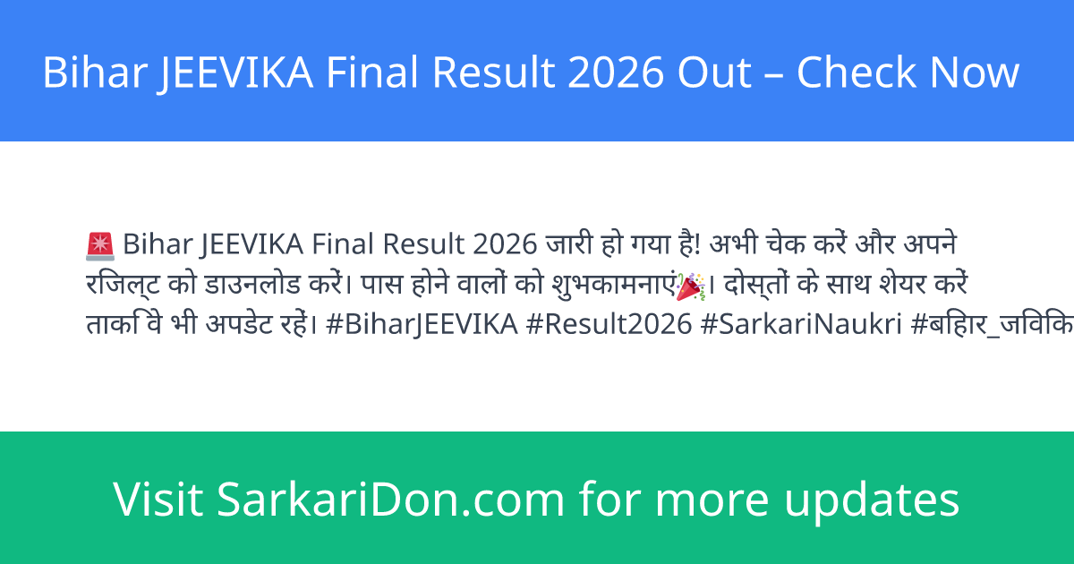 The final result for Bihar JEEVIKA 2026 has been declared and is now available to check online.