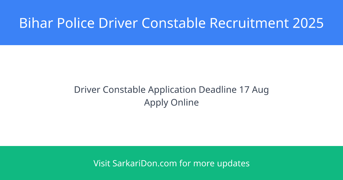 The Bihar Police has officially announced the recruitment for Driver Constables in the 2025 batch. If you are interested in securing a sarkari naukri, this is a golden opportunity, especially with 500 vacancies available! Make sure to complete your application before the deadline of 17 August 2025.