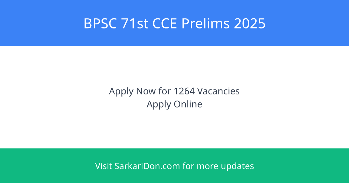 Bihar Public Service Commission (BPSC) 71st CCE Prelims 2025: Apply Now for 1264 Vacancies!