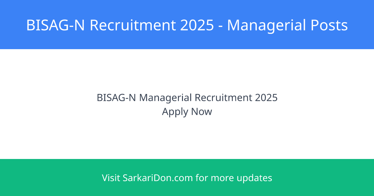 The Bhaskarcharya National Institute for Space Applications and Geo-Informatics (BISAG-N), under the Ministry of Electronics and Information Technology, Government of India, invites applications for various managerial positions purely on a contract basis.