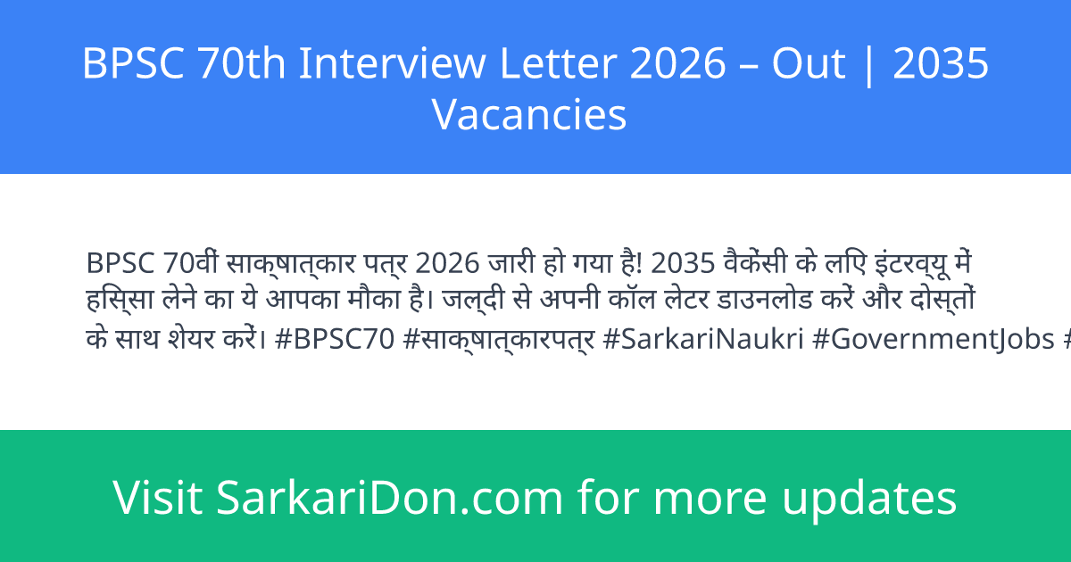 BPSC 70th Interview Letter 2026 β Out | 2035 Vacancies