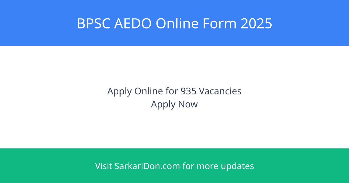 BPSC AEDO Online Form 2025: Apply for 935 Vacancies Now!