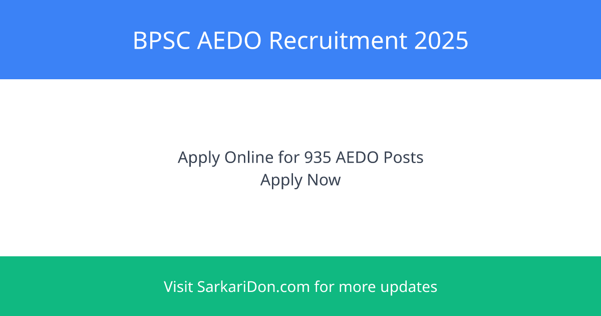 The Bihar Public Service Commission (BPSC Official Website) has released the recruitment notification for Assistant District Education Officer (AEDO) 2025 with a total of 935 vacancies. The online application form has been re-opened for candidates to apply.