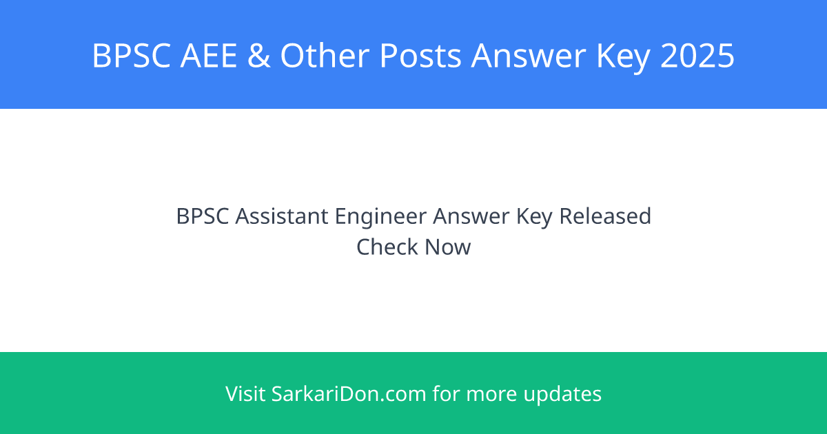 The Bihar Public Service Commission (BPSC) has officially released the Answer Key for the Assistant Engineer and other posts for the year 2025. Candidates who appeared for the exam can now check their answer sheets and calculate their probable scores.