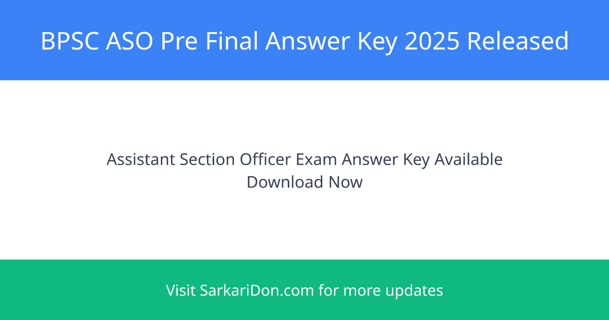 Result Declared! The Bihar Public Service Commission (BPSC) has released the Pre Final Answer Key for the Assistant Section Officer (ASO) Exam 2025 held on September 10, 2025.