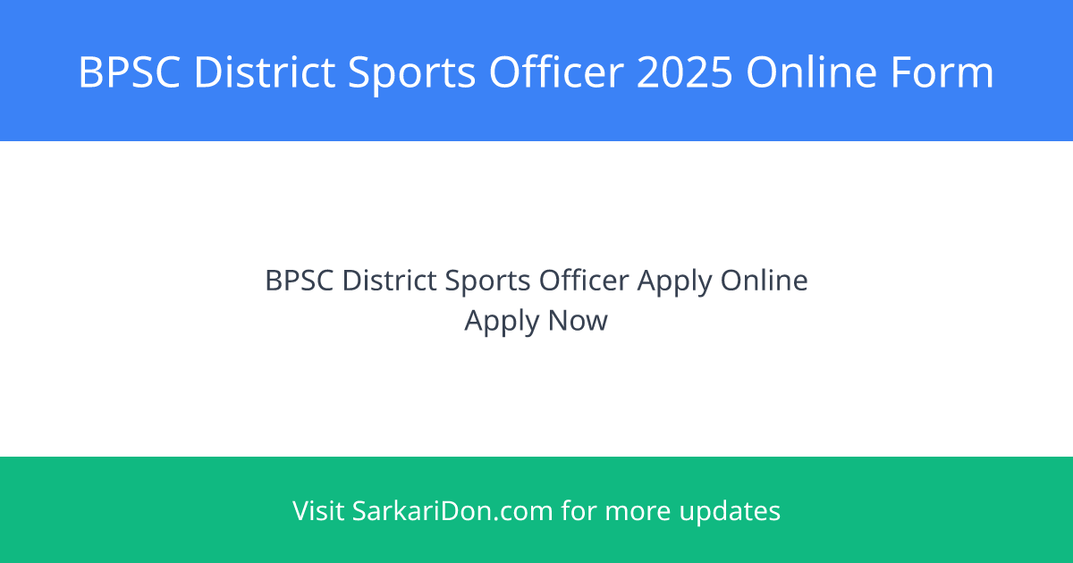 The BPSC District Sports Officer (DSO) Online Form 2025 will be available starting September 2, 2025, according to the official recruitment notification. Interested candidates who meet the eligibility criteria can apply online from that date onward.