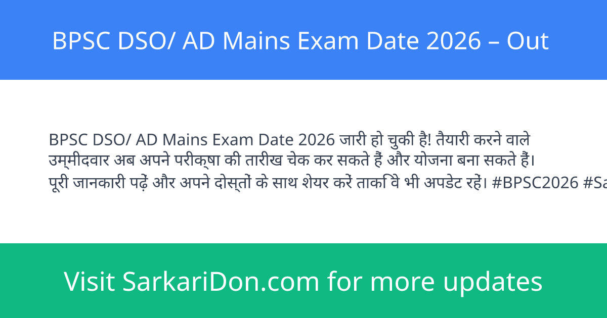 Q1: Has the BPSC DSO/ AD Mains Exam Date 2026 been released?