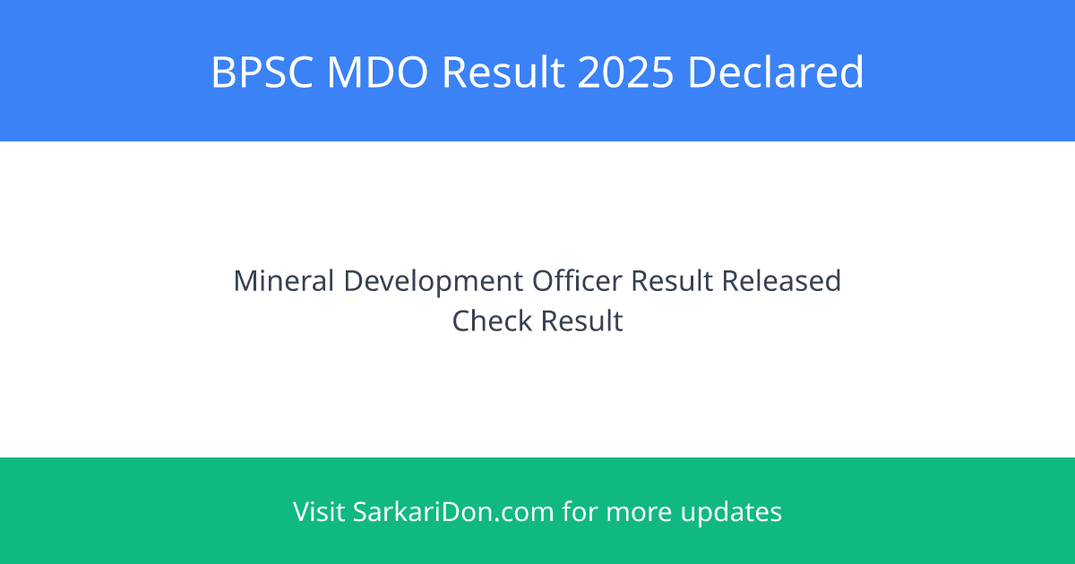 Bihar Public Service Commission (BPSC) has officially released the result for the Mineral Development Officer (MDO) Recruitment Exam 2025. The examination was conducted on August 09-10, 2025 and the results were declared on November 03, 2025. Candidates can now check their results using their Enrollment Number, Registration Number, or Date of Birth through the official portal.