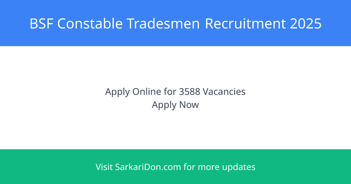 BSF Constable Tradesmen Recruitment 2025: Apply for 3588 Vacancies
