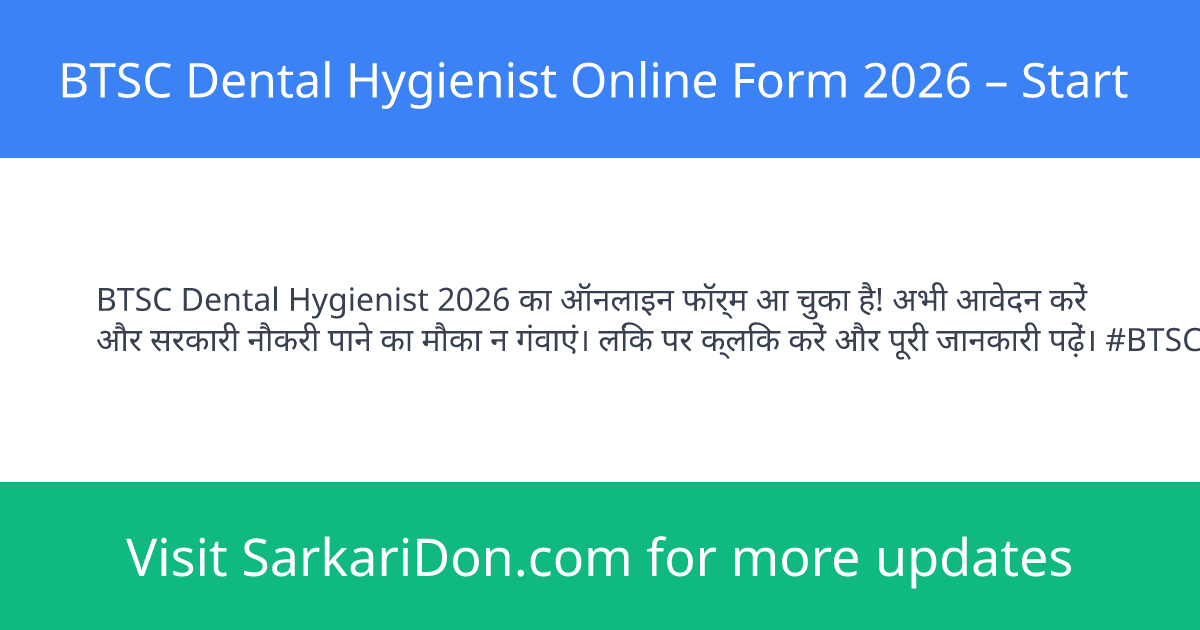 Q1: Has the BTSC Dental Hygienist 2026 application window started?