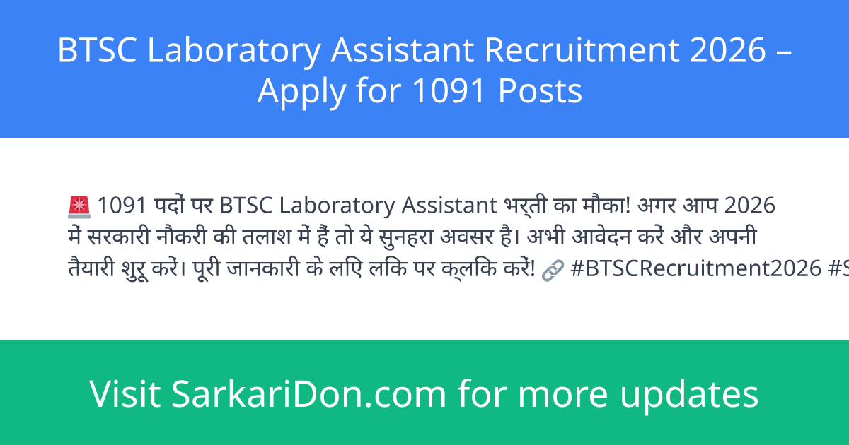 BTSC Laboratory Assistant Recruitment 2026 โ Apply for 1091 Posts