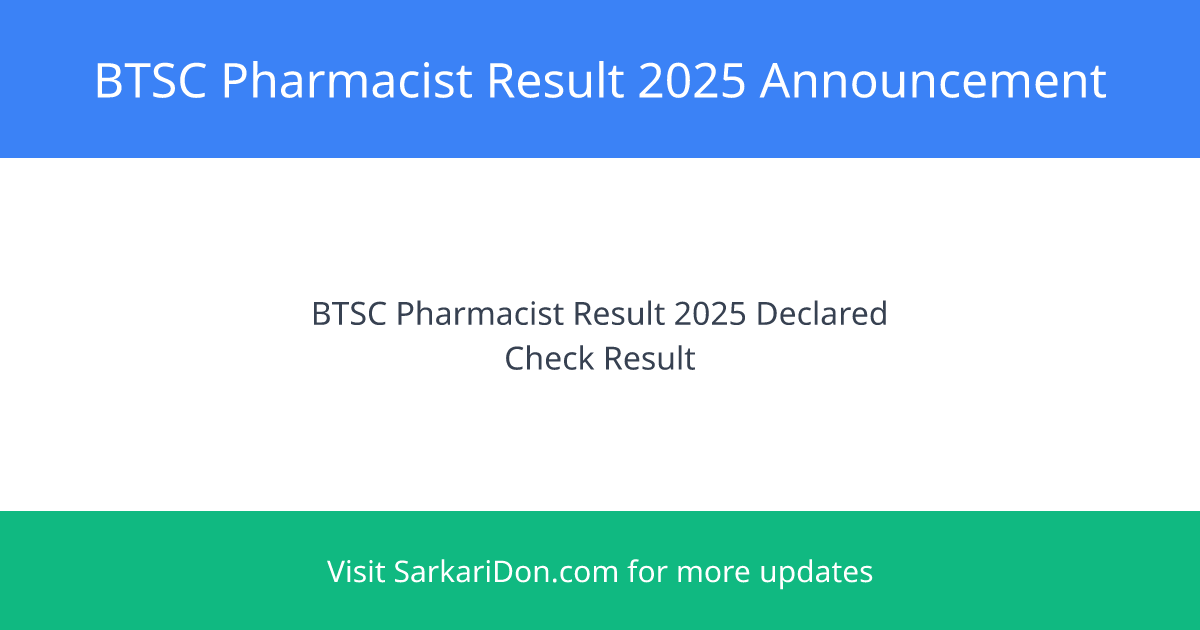 BTSC Pharmacist Result 2025 Announcement