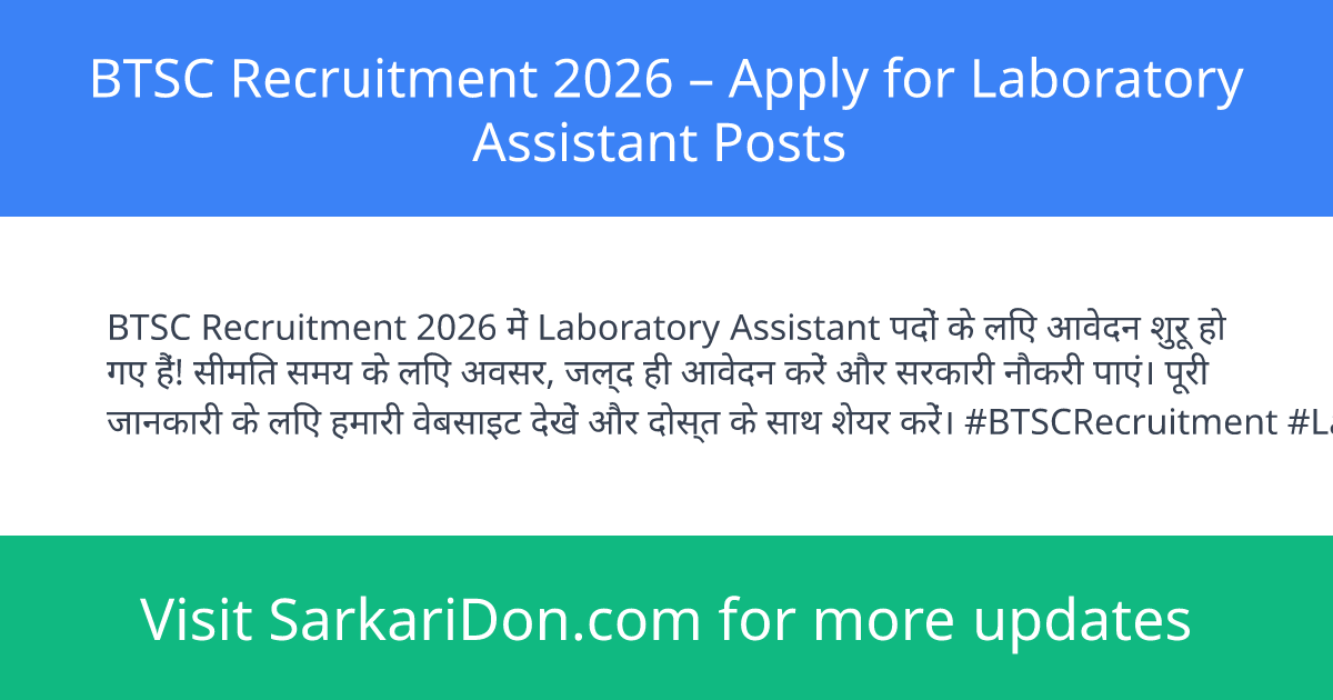 | Recruitment Name | BTSC Laboratory Assistant Recruitment 2026 |