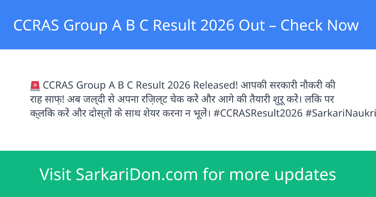 The Central Council for Research in Ayurvedic Sciences (CCRAS) has officially released the CCRAS Group A B C Result 2026. Candidates who appeared for the various posts recruitment can now check their results online from the official CCRAS recruitment portal immediately.