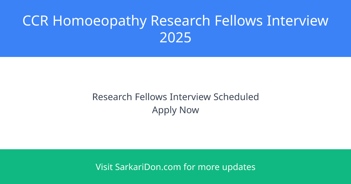 The Central Council for Research in Homoeopathy (C.C.R.H.), under the Ministry of AYUSH, Government of India, has recently announced the engagement of Research Fellows on a contract basis. This is an excellent opportunity for those seeking a sarkari naukri in the healthcare research sector.