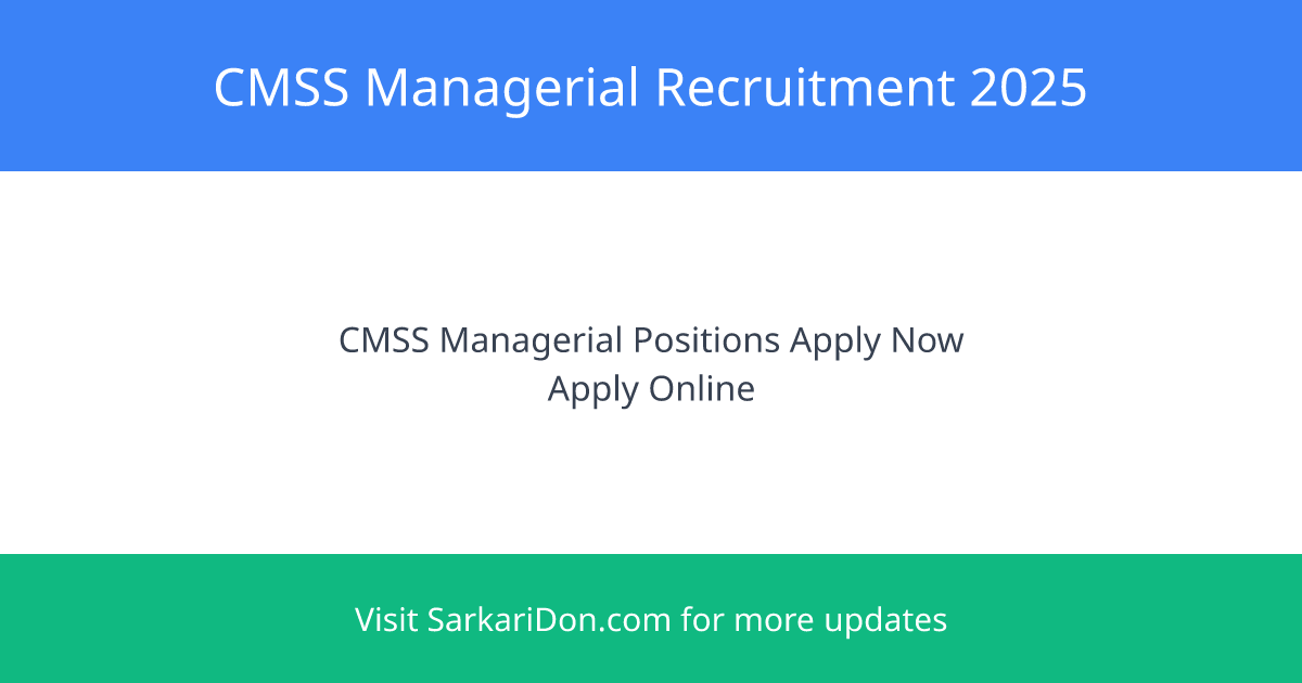 Interested applicants may email recruitment@cmss.gov.in for details on the advertisement, application form, general terms & conditions or download the necessary documents from the official CMSS website.