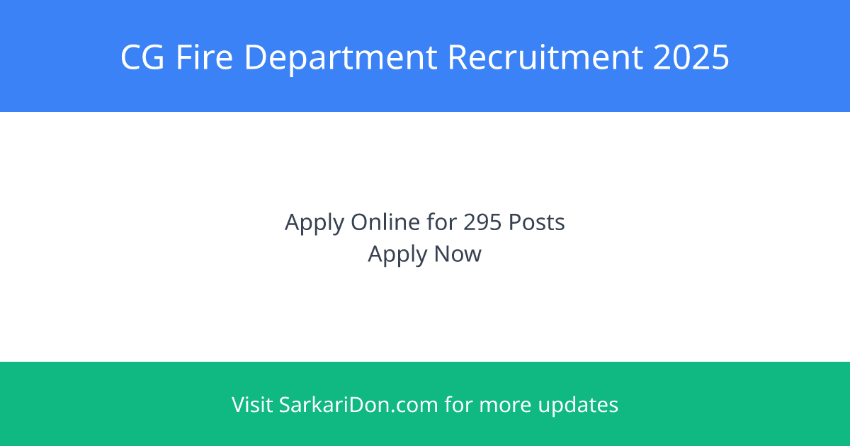 The CG Fire Department Online Form for 2025 recruitment is open for various posts including Fireman, Station Officer, Driver, Mechanic, Storekeeper, Watchroom Operator, Wireless Operator, and Station Officer (Sub Inspector). There are a total of 295 vacancies available.