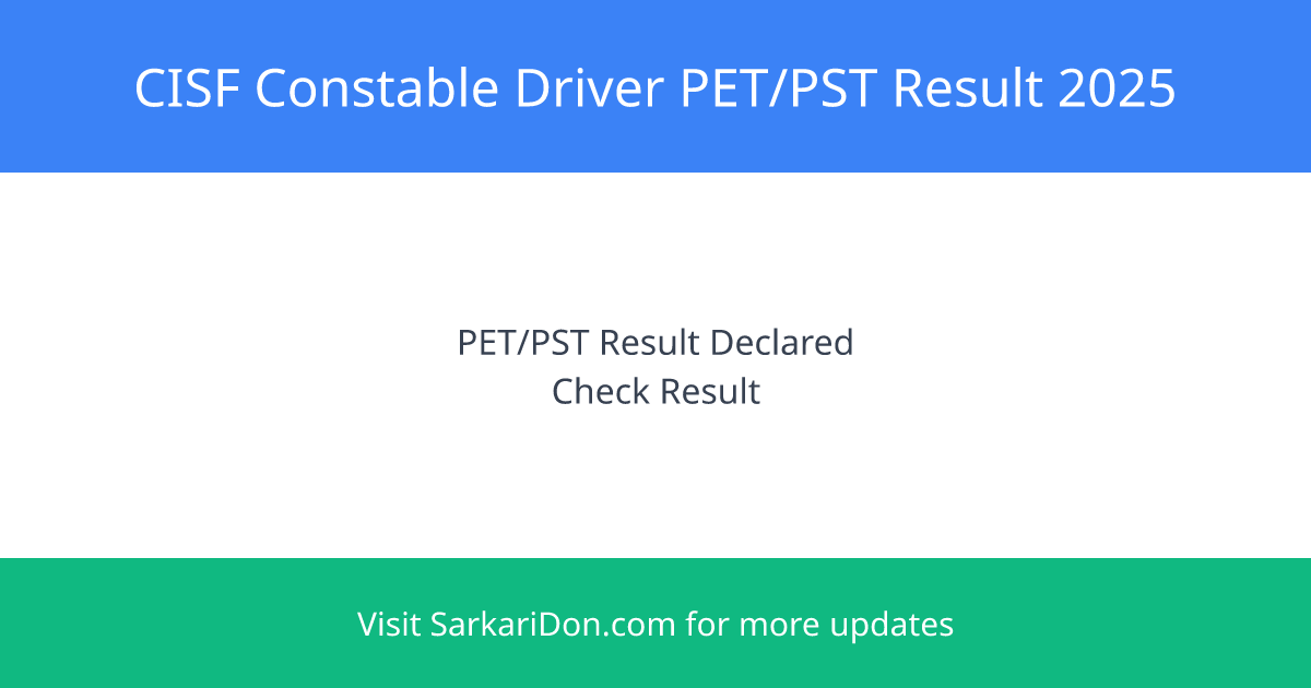 โ CISF Constable Driver PET/PST Result 2025 - Announcement