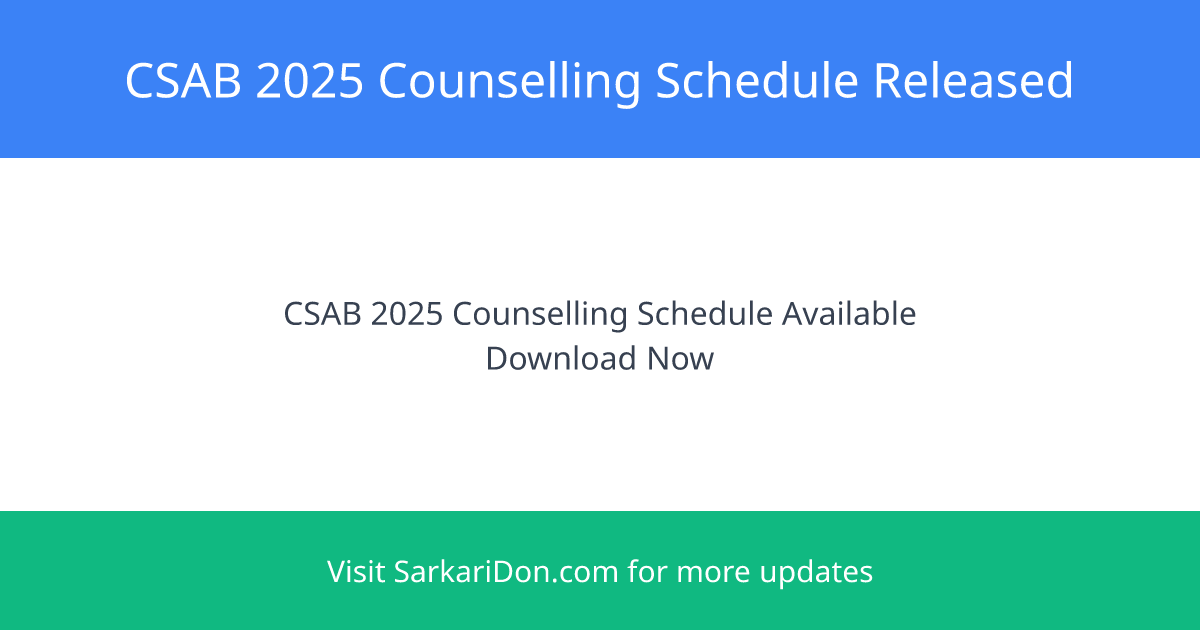CSAB 2025 Counselling Schedule Released for DASA and Special Rounds with Direct Download Link
