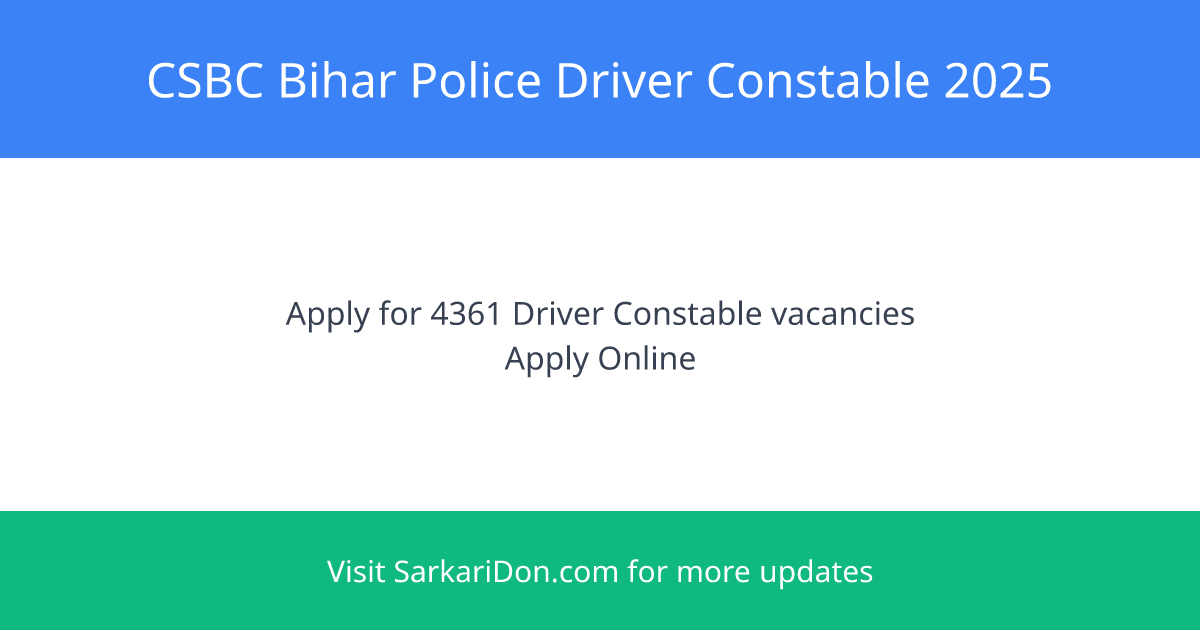 π CSBC Bihar Police Constable 2025: Apply Now for 4361 Driver Constable Vacancies!