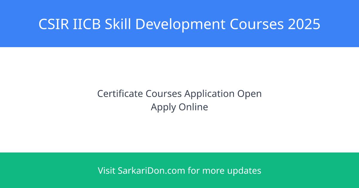 The CSIR - Indian Institute of Chemical Biology in Kolkata is inviting applications for its Certificate in Skill Development courses under the CSIR-Integrated Skill Initiative. These courses are designed for individuals seeking to enhance their skills in various areas of biological sciences.