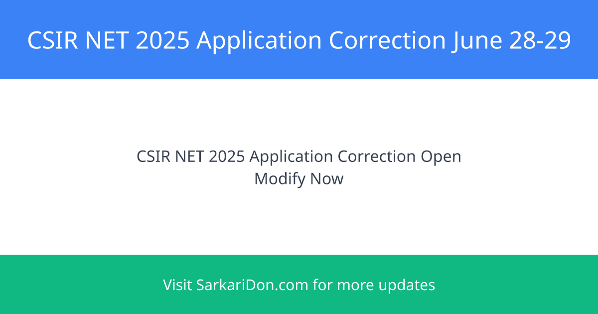 The National Testing Agency (NTA) has opened the CSIR NET 2025 application correction portal starting from June 28, 2025. Candidates who have already submitted their applications for the CSIR UGC NET June 2025 exam can now make corrections or modifications to their application forms. This correction window is a limited-time opportunity and will close on June 29, 2025, at 11:59 PM.