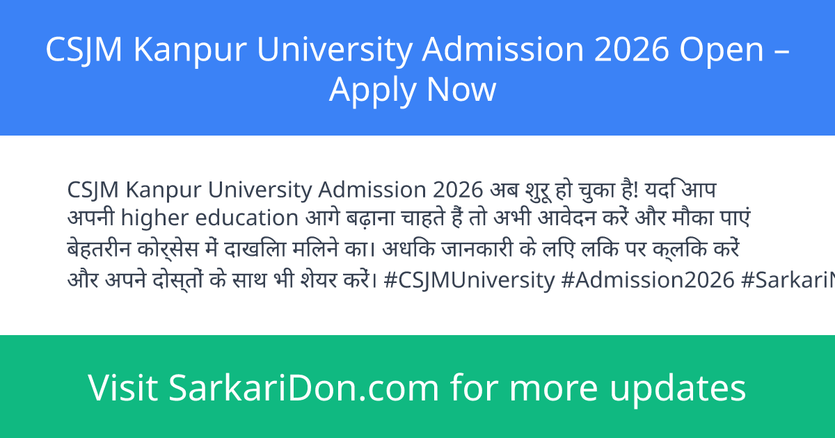 Chhatrapati Shahu Ji Maharaj University (CSJM) Kanpur has officially announced the opening of online applications for various undergraduate, postgraduate, diploma, and certificate courses for the academic year 2026. Interested candidates can now apply for admission through the official university portal.